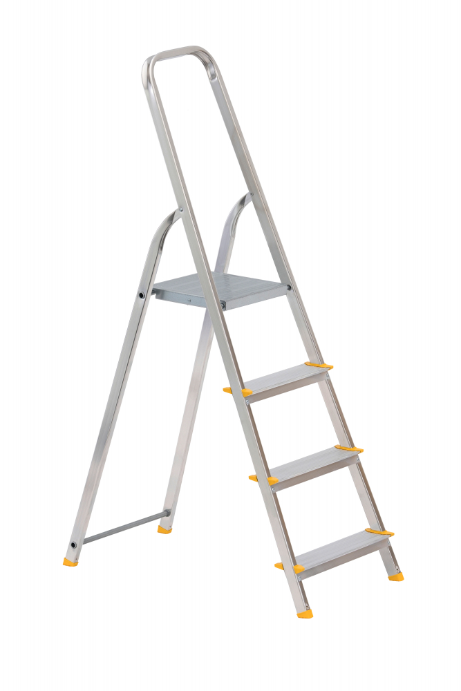 Jednostranné hliníkové schodíky EUROSTYL, počet nášľapov vr. plošinky 1 x 4, rozmery plošinky 264 x 262 mm, max. výška plošinky 0,76 m a šírka 431 mm. Možnosť použitia na domáce účely.