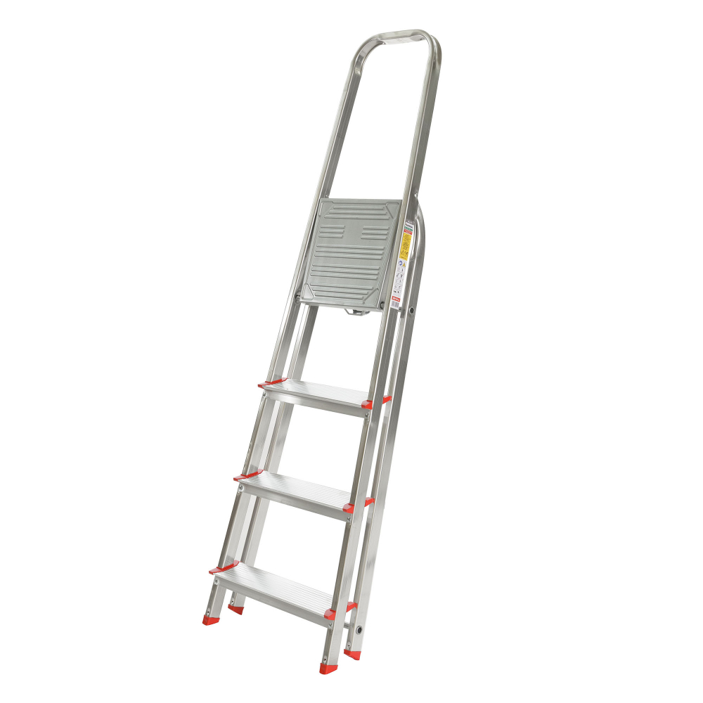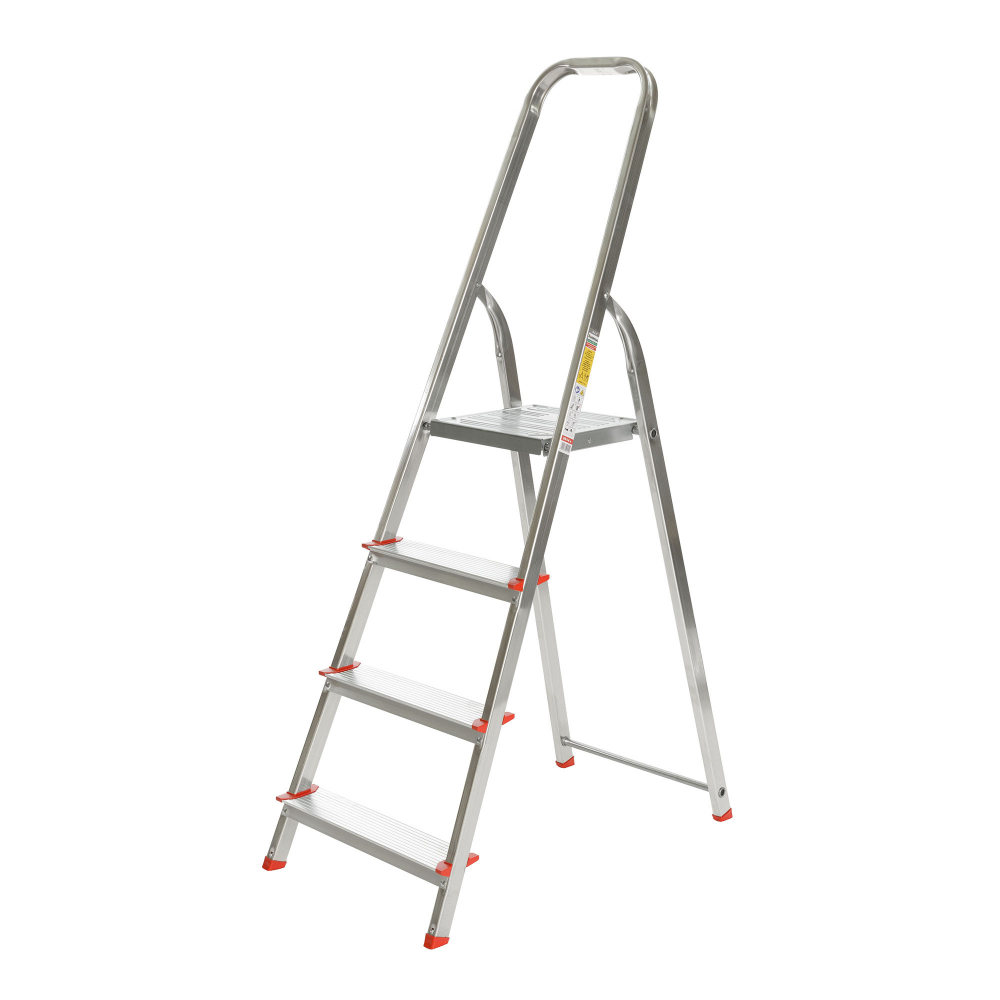 Jednostranné hliníkové schodíky EUROSTYL, nosnosť do 120 kg, počet nášľapov vrátane plošinky 1x4, rozmery plošinky 264x262, výška plošinky 0,76 m, šírka schodíkov 431 mm. Možnosť použitia na domáce účely. Upozornenie: Ide o výrobok so zníženými úžitkovými vlastnosťami - nosnosť 120 kg. Porovnanie: