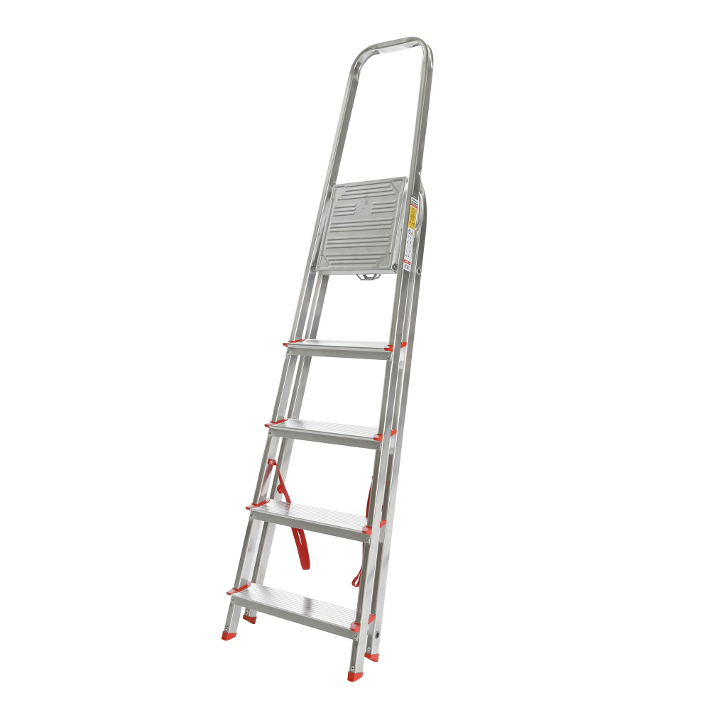 Jednostranné hliníkové schodíky EUROSTYL, nosnosť do 120 kg, počet nášľapov vrátane plošinky 1x5, rozmery plošinky 264x262, výška plošinky 0,98 m, šírka schodíkov 456 mm. Možnosť použitia na domáce účely. Upozornenie: Ide o výrobok so zníženými úžitkovými vlastnosťami - nosnosť 120 kg. Porovnanie: