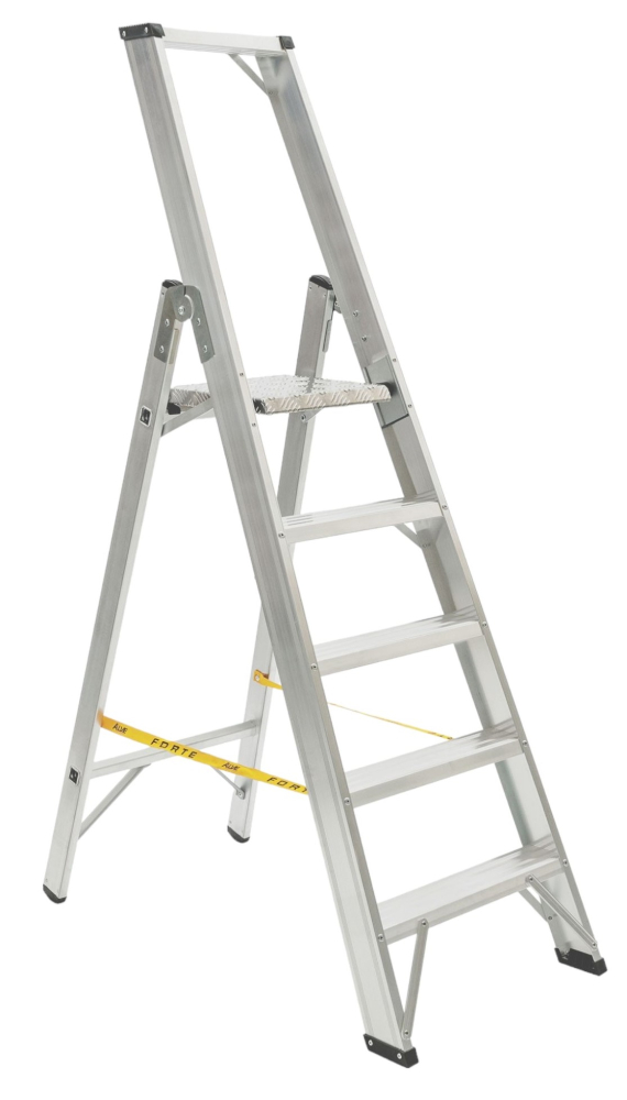 Jednostranné hliníkové schodíky FORTE, počet nášľapov vr. plošinky 1 x 5 , rozmery plošinky 305 x 290 mm, max. výška plošinky 1,06 m a šírka 522 mm. Možnosť použitia na profesionálne účely.Na produkt sa vzťahuje záruka 7 rokov.