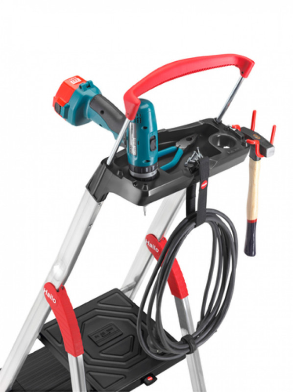 Schodíky jednostranné hliníkové Topline L100 s multifunkčnou priehradkou, bezpečnostným držadlom a zaistením plošiny. Počet nášľapov vrát. plošinky 1x6.- multifunkčná priehradka k odkladaniu náradia, plechoviek s farbou alebo drobných dielov- pútko na vedro s rýchlouzáverom na bezpečné upevnenie vedier, vysávačov či káblových navijakov a háky na zavesenie drobného náradia- hliníkové schody s protišmykovým drážkovaním a šírkou až 13 cm- pozinkovaná oceľová plošina s protišmykovým drážkovaním- protišmyková nasadzovacia pätka- výsuvné bezpečnostné držadlo pre väčšiu stabilitu a bezpečnosť- zaisťovací systém plošiny pre bezpečné zaistenie a odistenie schodíkovMožnosť použitia na domáce i profesionálne účely.