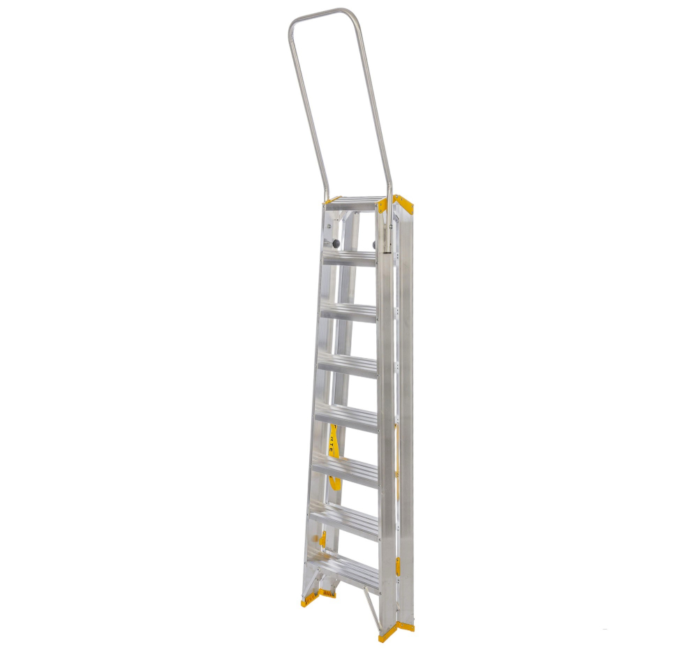 Obojstranné hliníkové schodíky so sklápateľným madlom FORTE, počet nášľapov 2 x 8, výška 1,70 m a šírka 546 mm. Možnosť použitia na profesionálne účely. Na produkt sa vzťahuje záruka 7 rokov.