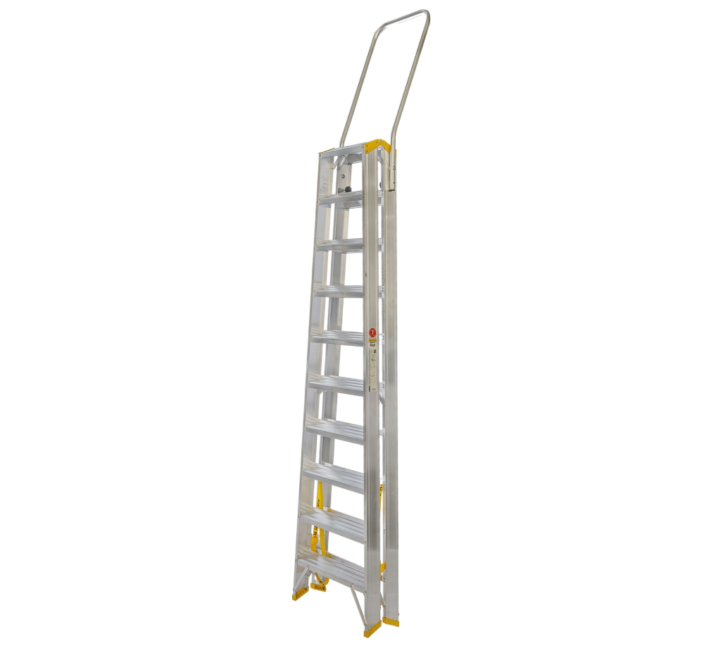 Obojstranné hliníkové schodíky so sklápateľným madlom FORTE, počet nášľapov 2 x 10, výška 2,12 m a šírka 594 mm. Možnosť použitia na profesionálne účely. Na produkt sa vzťahuje záruka 7 rokov.