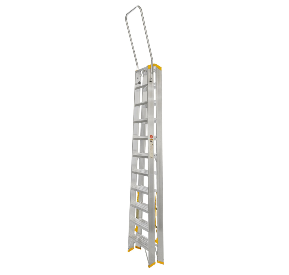 Obojstranné hliníkové schodíky so sklápateľným madlom FORTE, počet nášľapov 2 x 11, výška 2,34 m a šírka 618 mm. Možnosť použitia na profesionálne účely. Na produkt sa vzťahuje záruka 7 rokov.