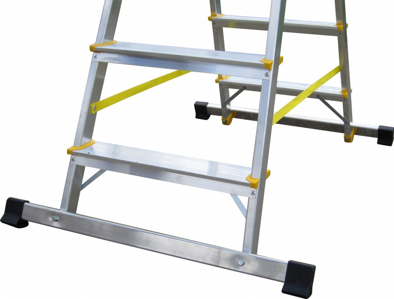 Schodíky obojstranné hliníkové so stabilizátorom, určené na používání na nezpevnenom povrchu, vhodné na použitie v záhradach a sadoch. Protisklzové, široké a bezpečné nášľapy. Počet nášlapov 2x3 až 2x8, max. výška 0,61 až 1,68 m a šírka 650 až 700 mm.Možnosť použitia na domáce účely.