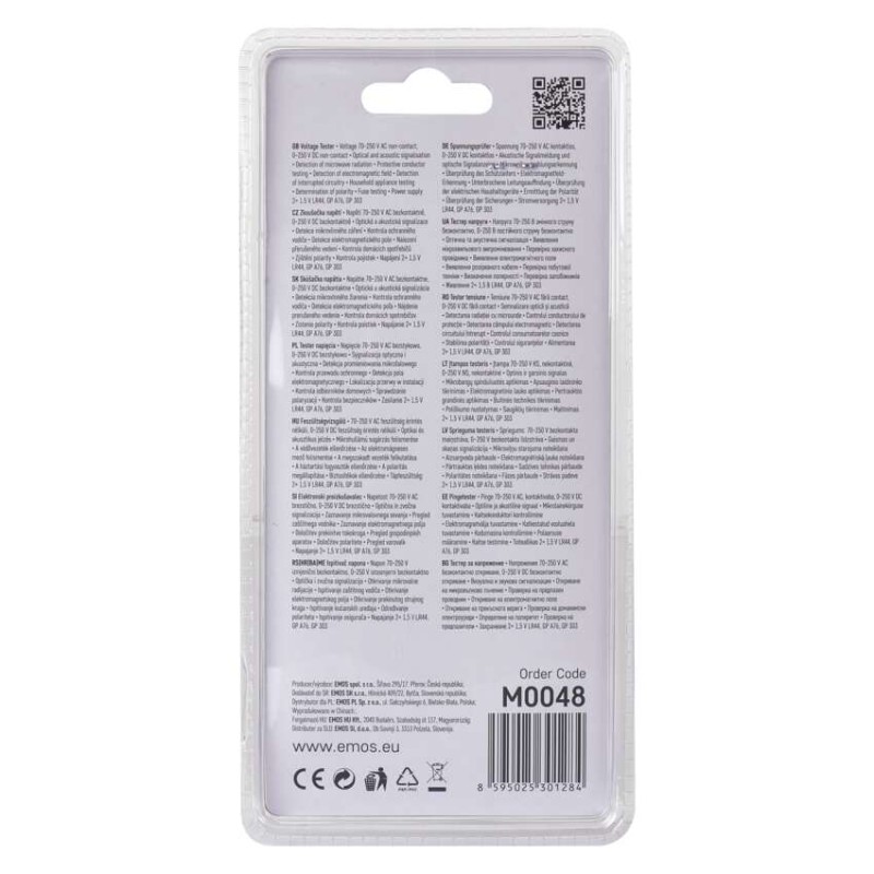 Skúšačka napätia s optickou signalizáciou. Skúšačka je určená na zisťovanie striedavého napätia 70–250 V a jednosmerného napätia 0–250 V. Skúšačka zisťuje tiež polaritu zdrojov alebo skrat. Skúšačka napätia je napájaná 2× LR41 (súčasť balenia).