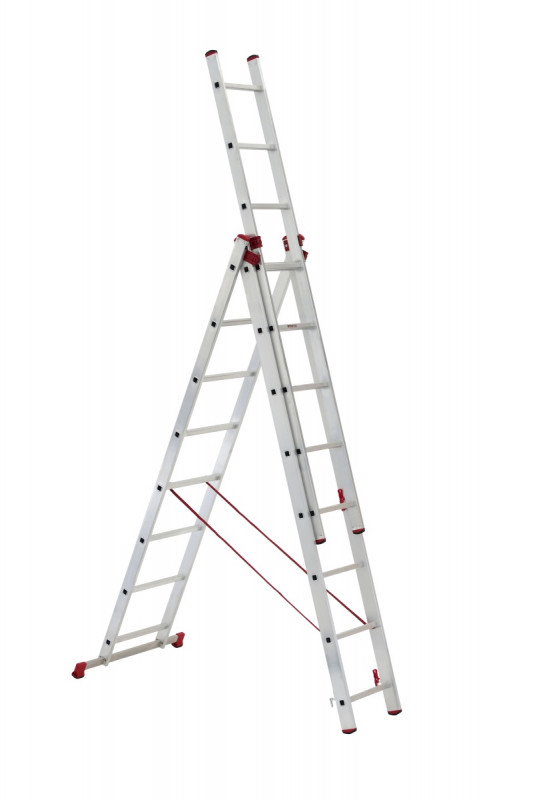 Trojdielny hliníkový univerzálny neprofesionálny rebrík HELPER, počet priečok 3 x 8, výsuvná dĺžka 5,13, šírka 454 mm. Možnosť použitia na domáce účely.