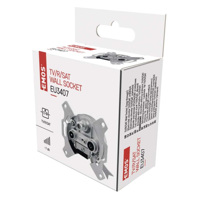 Účastnícka zásuvka EU 3407 priebežná s odbočným útlmom 3 dB, priechodným útlmom 14 dB a zdierkami TV + R. Účastnícka zásuvka prepája napr. anténu s televíziou, satelitom alebo set-top-boxom. SAT zdierka priechodná pre jednosmerné napätie a možno ju tiež využiť pre priechod napájania predzosilňovača v terestriálnej anténe.