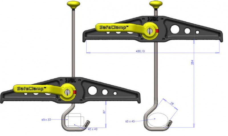Uzamykateľný upínací systém na rebríky. Za pomoci upínacieho systému Safe Clamp dokážete jednoducho a rýchlo prichytiť rebrík k priečnemu nosiču na streche auta.Rozmer upínacej plochy je 40x3cm, dlžka upínacieho háku 30cm.Balenie obsahuje: 2x upínací systém, 2x upínací hák, 2x zámok, 2x kľúč.Upínací systém je uzamykateľný.Upozornenie: upínací systém nie je možné použiť na priečniky väčšieho profilu ako 60x30mm, 45x40mm (viď obr. rozmer hákov).